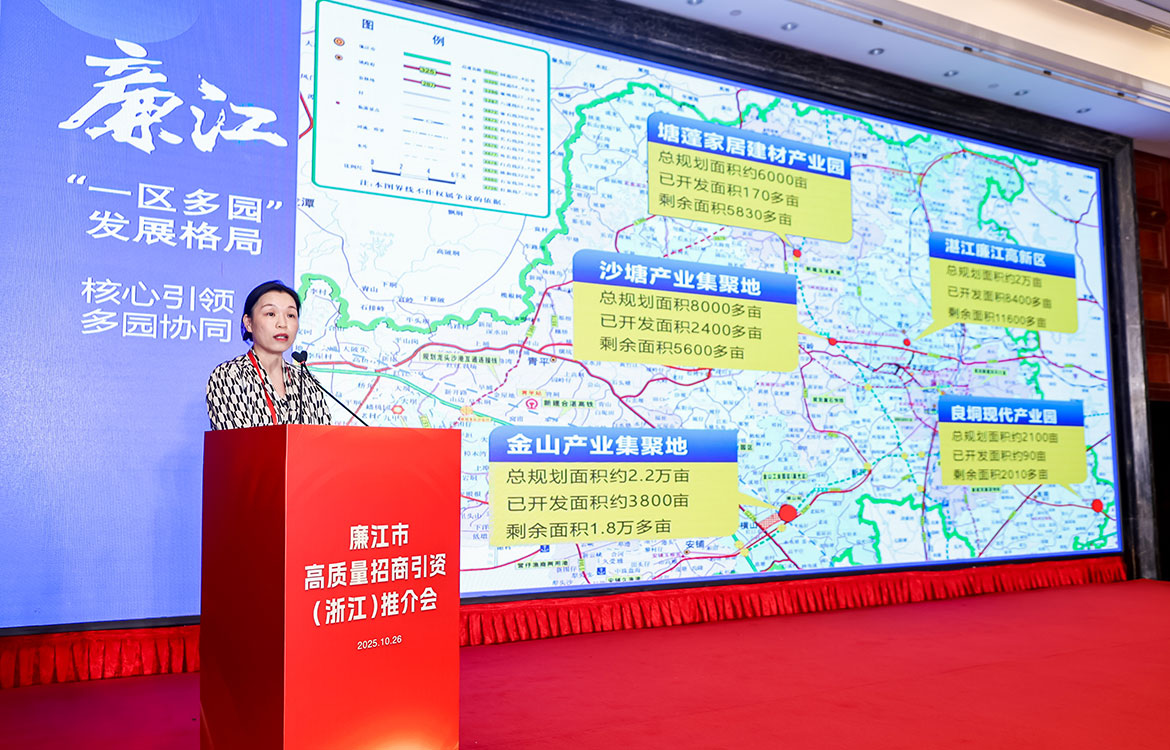 10月26日,廉江市高質(zhì)量招商引資(浙江)推介會(huì)在杭州舉行,遠(yuǎn)赴1600公里亮出廉江投資創(chuàng)業(yè)的優(yōu)勢(shì),介紹具有潛力的產(chǎn)業(yè)領(lǐng)域,成功帶回12個(gè)優(yōu)質(zhì)項(xiàng)目。
