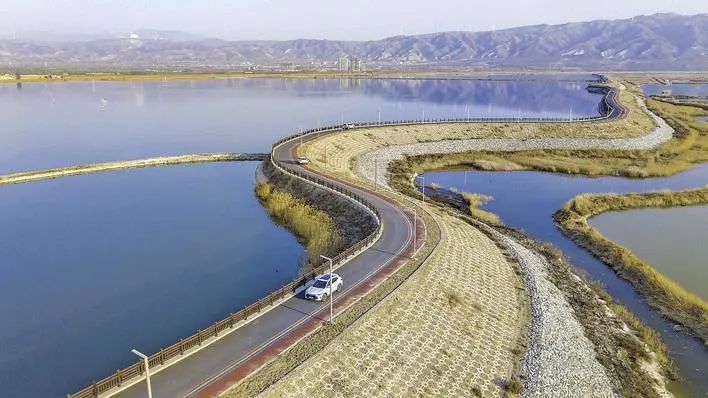 “內(nèi)外兼修”,鴨子池涅槃重生。站在池東新修的大壩觀景臺(tái),兩側(cè)水域煙波浩渺、碧波蕩漾,成群的白鷺自由翱翔,將全線貫通的鴨子池環(huán)湖路與一堰之隔的七彩鹽湖環(huán)湖路相連,一幅天人合一的大美勝景令人心曠神怡!