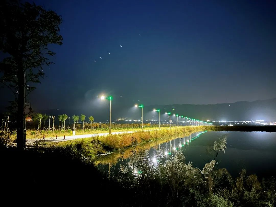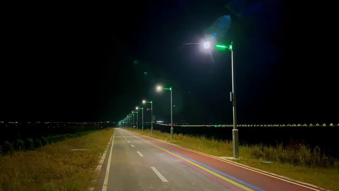 環(huán)湖綠道的路燈亮燈運行,給市民提供了又一個夜間漫步鹽湖的好去處,為七彩鹽湖的夜晚再添“光彩”。