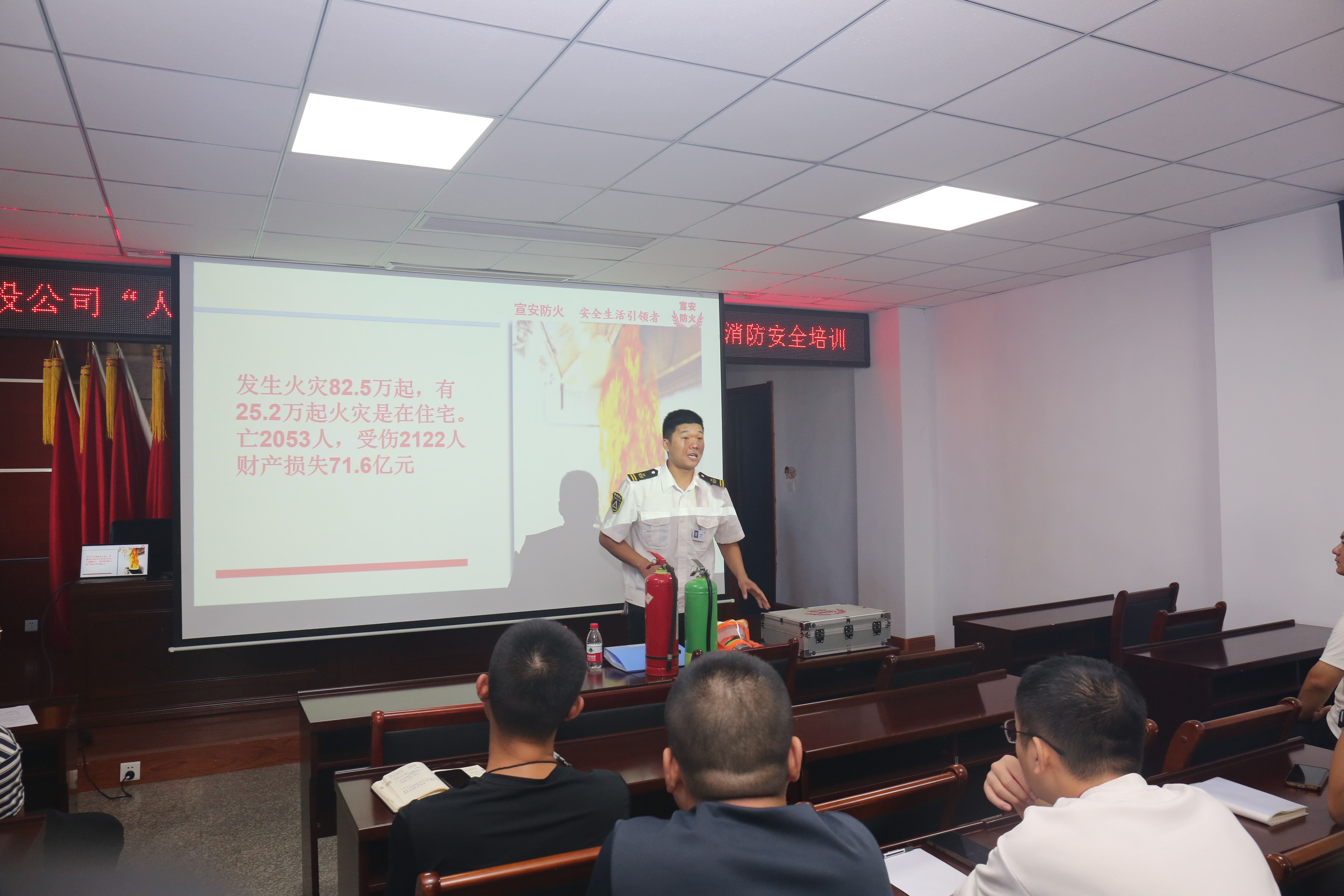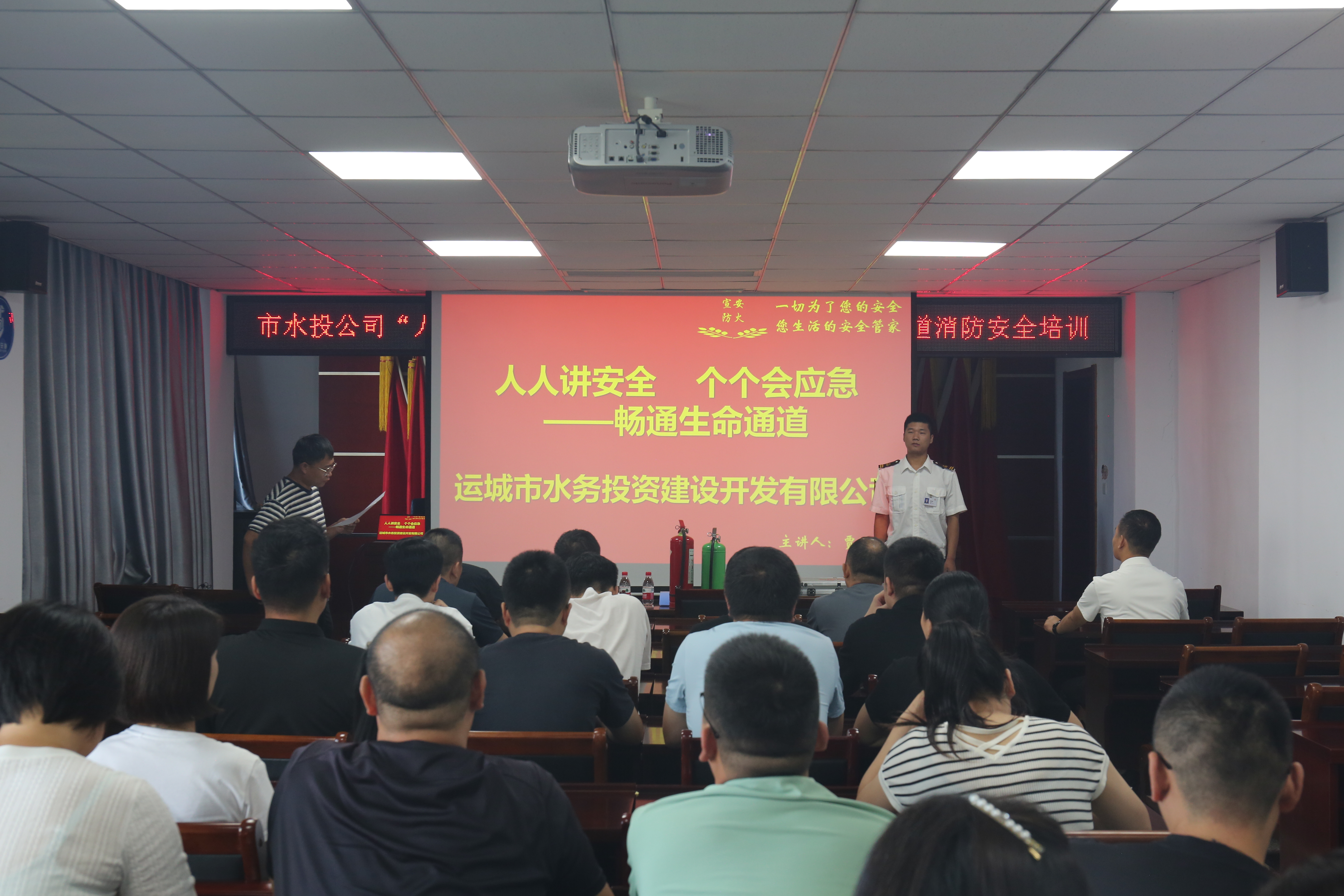 為進一步提升消防防控水平,增強職工消防安全意識和責任意識,9月19日上午,公司組織開展“人人講安全,個個會應急”——暢通生命通道為主題的消防安全培訓。培訓邀請宣安防火專業(yè)人員賈迎港講師授課。圍繞消防知識、消防意識、消防工具的使用及常用滅火方法等多方面內(nèi)容展開培訓,公司機關30余人參加。