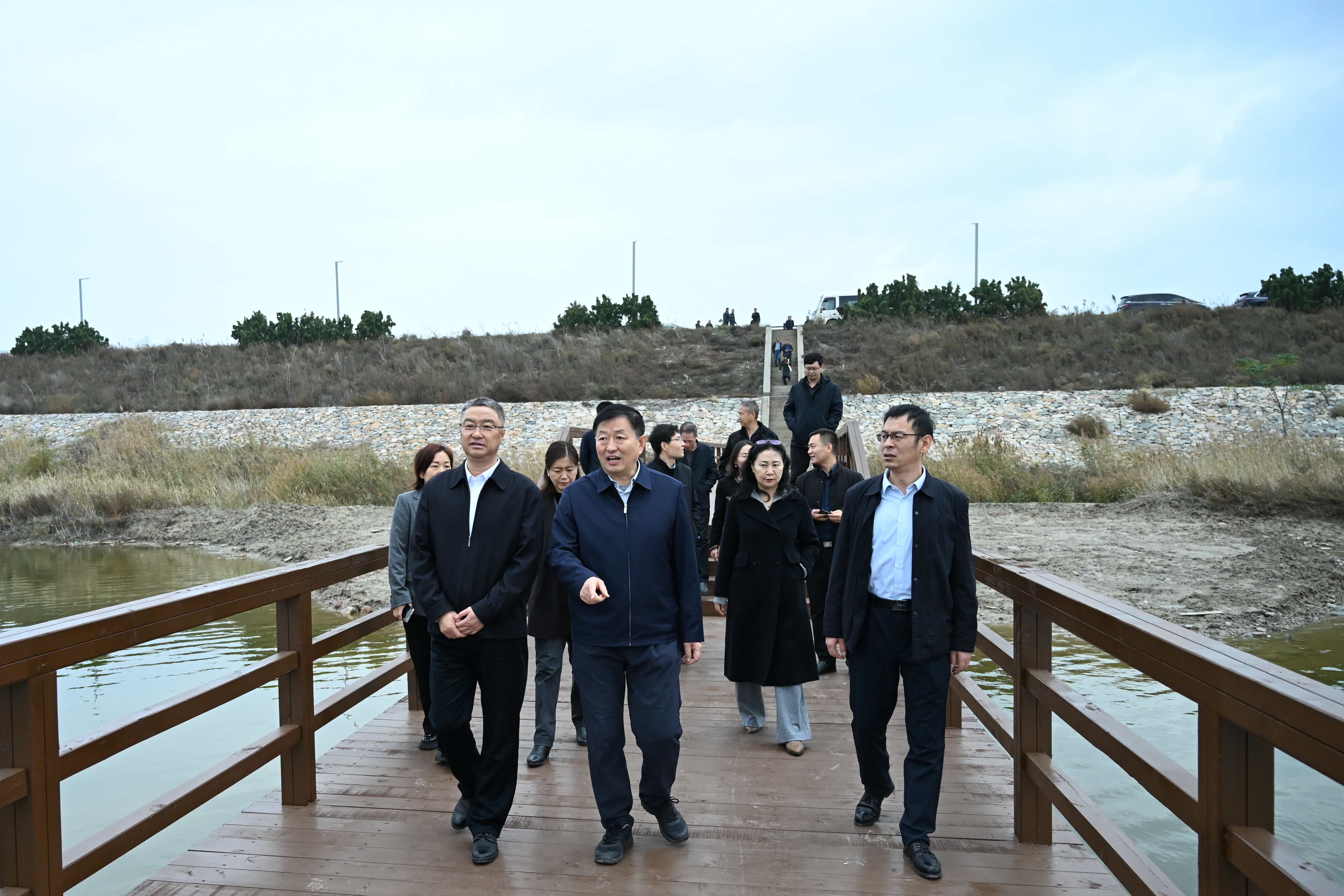 潘志孝一行實地考察鹽湖生態(tài)濕地公園、鹽湖木棧道項目建設(shè)情況,聽取相關(guān)匯報,詳細了解工程進展。