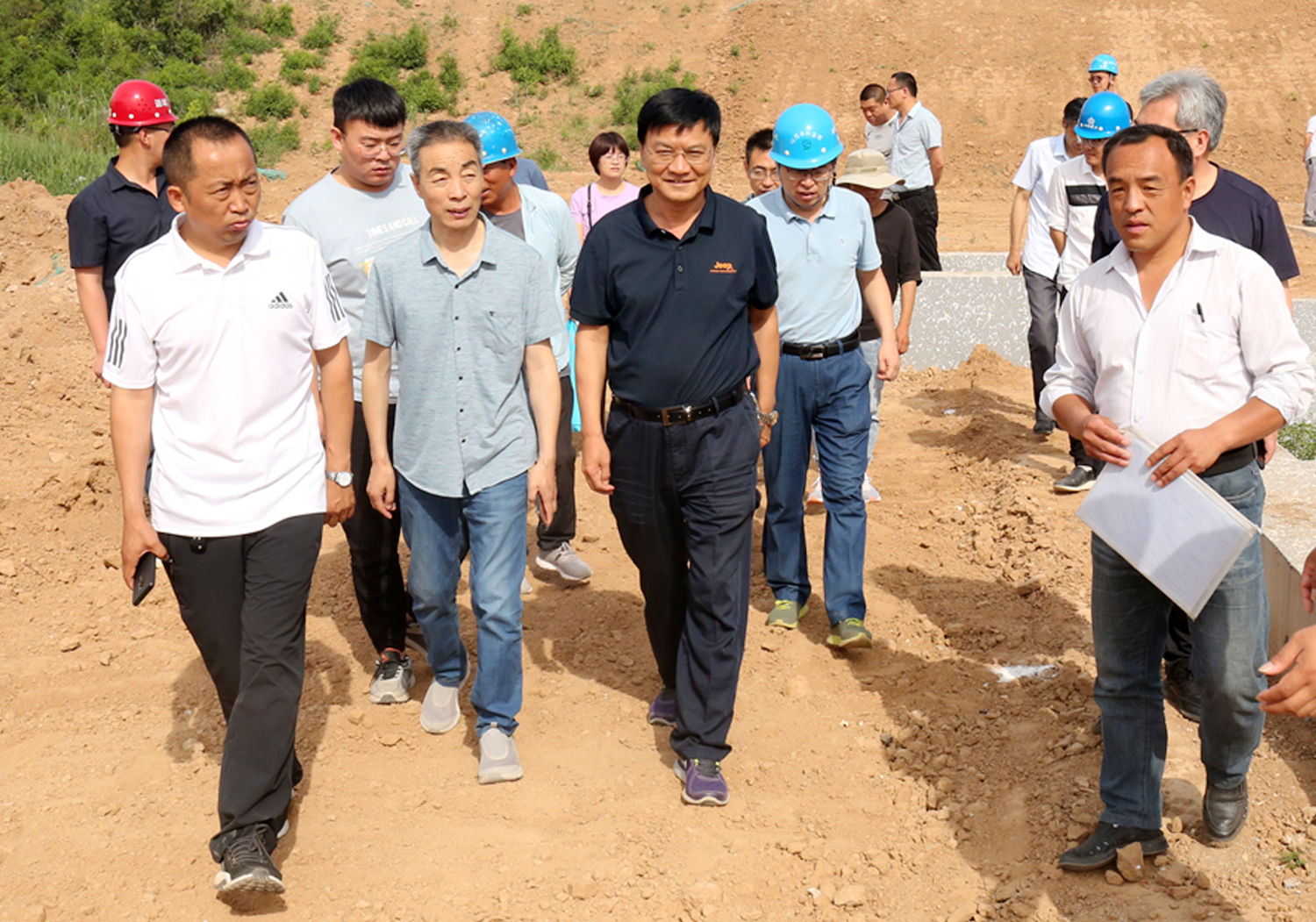 6月1日上午,公司董事長崔作銘率領(lǐng)公司工程專家和相關(guān)人員赴姚暹渠空港段現(xiàn)場辦公,會同設(shè)計單位、項目公司、監(jiān)理單位和項目部,討論解決空港段施工中存在的渠堤綠化和道路排水等問題,并逐段踏勘了姚暹渠禹都段地形地貌和地表附著物現(xiàn)狀。
