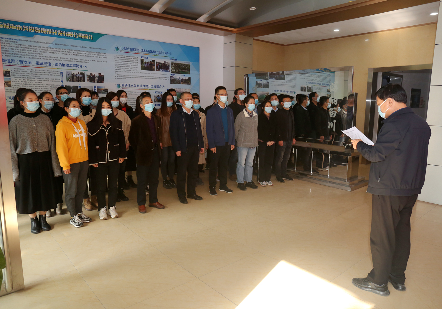 公司董事長(zhǎng)兼總經(jīng)理崔作銘作出重要講話,對(duì)我公司全體人員提出三點(diǎn)要求:一是要提高認(rèn)識(shí),擔(dān)責(zé)克難;二是要強(qiáng)化執(zhí)行,真演真練;三是要堅(jiān)持不懈,抓常抓長(zhǎng)。要求我公司人員要牢固樹(shù)立防范重于處置的理念,變被動(dòng)應(yīng)對(duì)為超前防范,做好秋冬季疫情防控工作,把風(fēng)險(xiǎn)因素降到最低程度,為公司經(jīng)營(yíng)發(fā)展做大做強(qiáng)創(chuàng)造穩(wěn)定的環(huán)境。