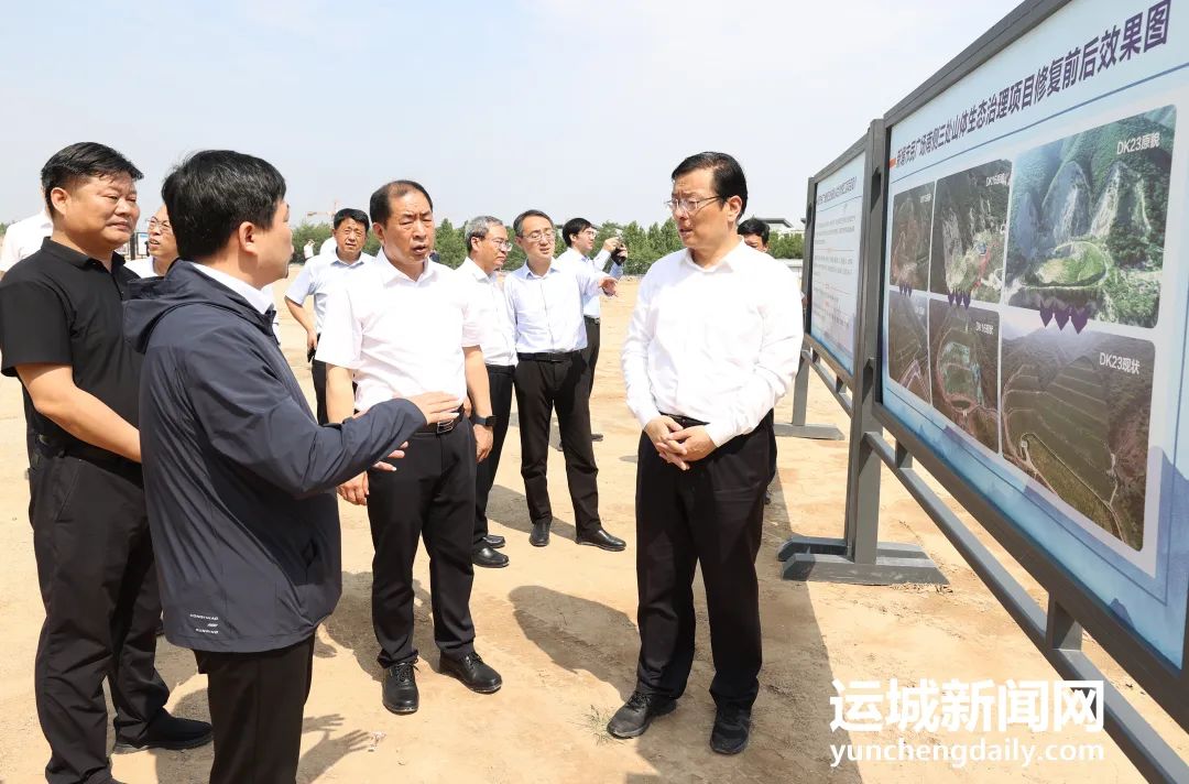 近年來,市委、市政府加大中條山廢棄露天礦山修復(fù)力度,昔日破損山體被綠植覆蓋、恢復(fù)原貌。在南山新境市民廣場,丁小強詳細了解受損山體生態(tài)修復(fù)情況,強調(diào),